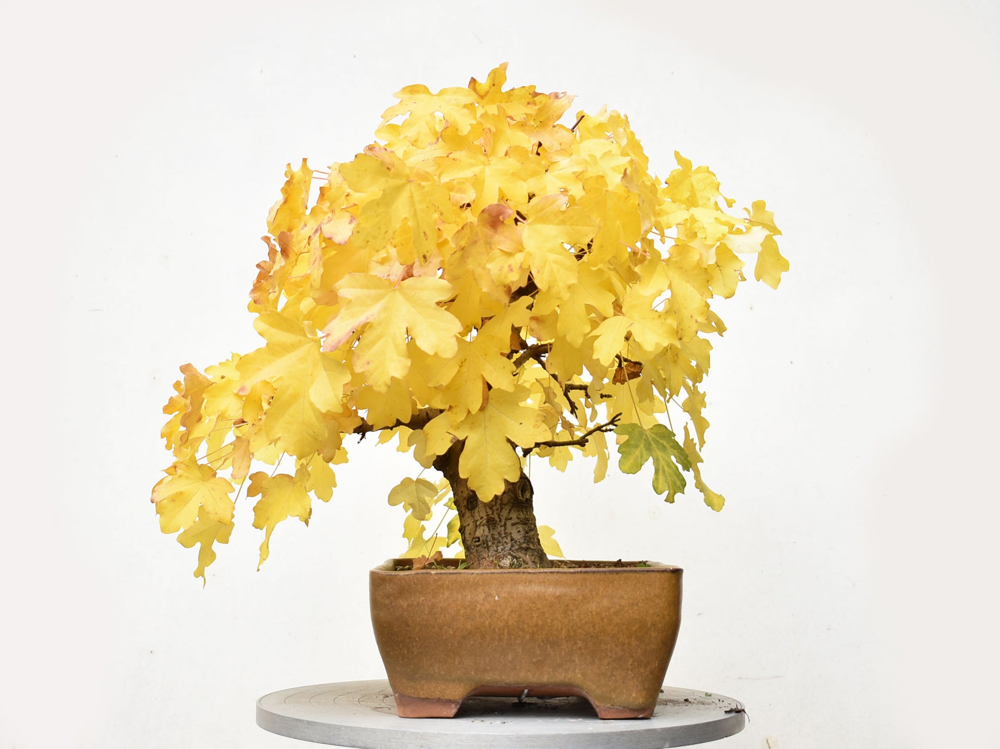 El Acer campestre es un árbol caducifolio muy apreciado por sus hojas pequeñas, su crecimiento compacto y su espectacular color otoñal. Ideal para estilos escoba, bosque o tronco múltiple.