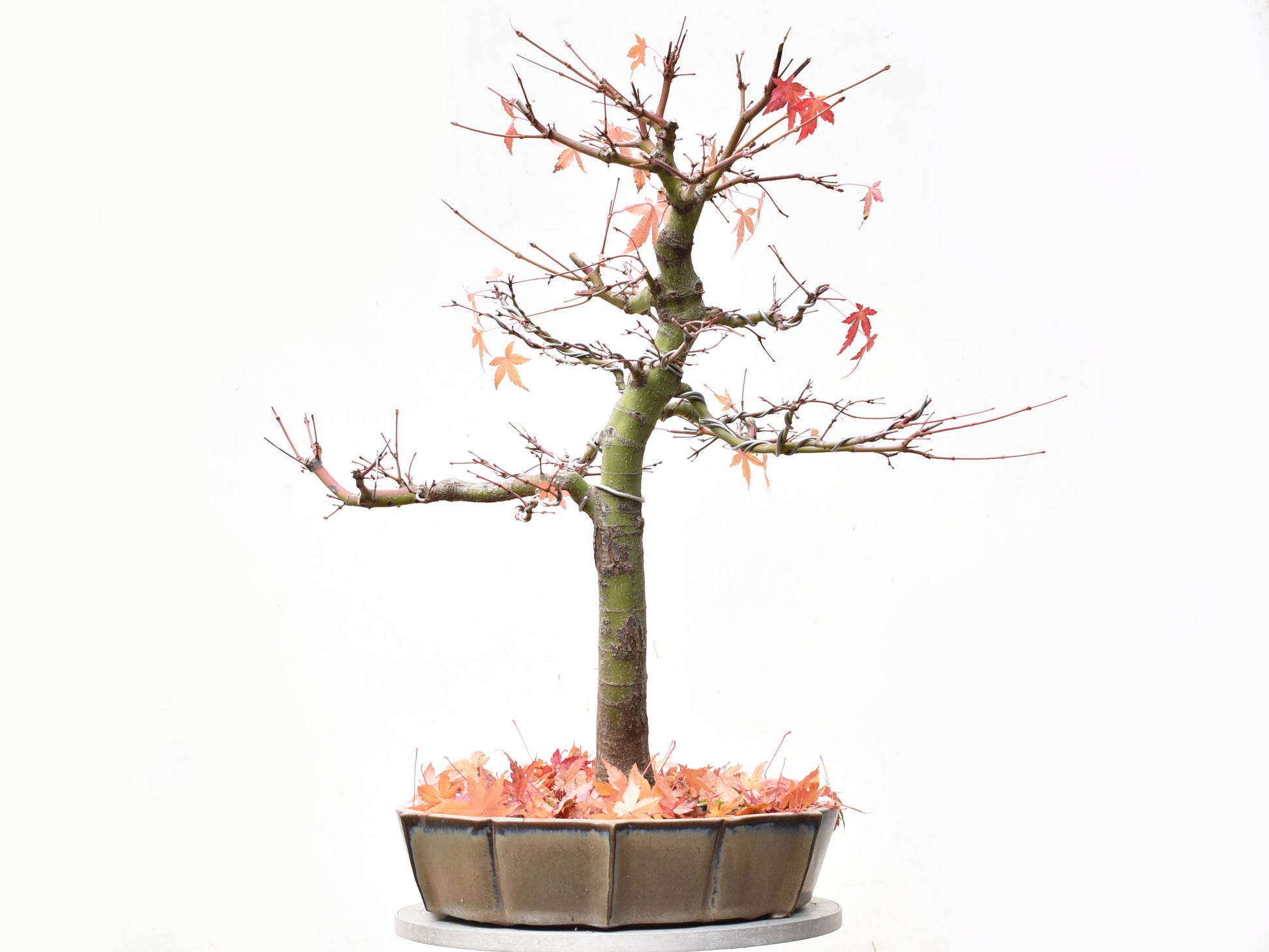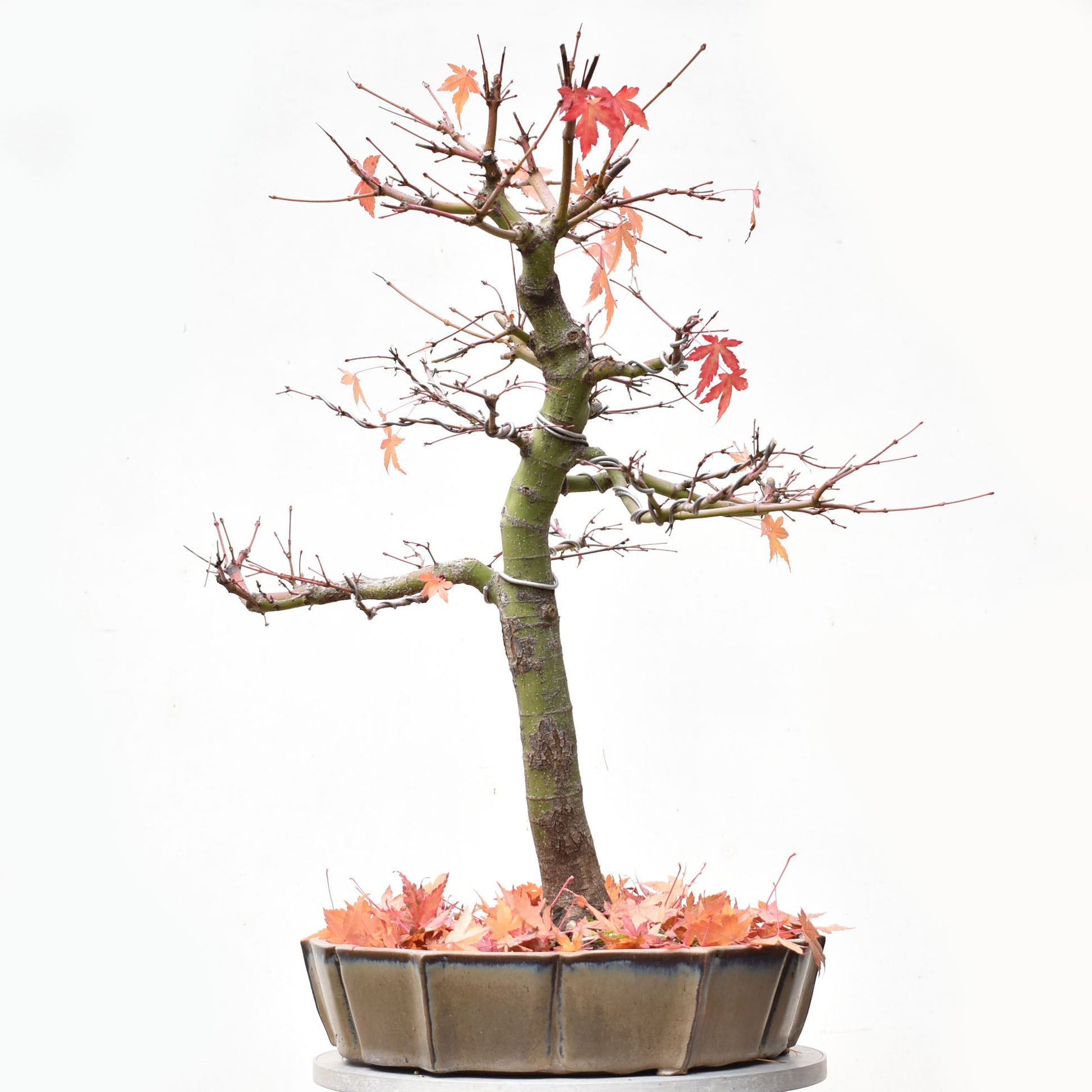 Cultivado por 9 años desde semilla y sobre tabla por 7 años, este Bonsai de ARCE JAPONES (Acer palmatum) tiene un increíble nebari radial y una hermosa coloración otoñal.
