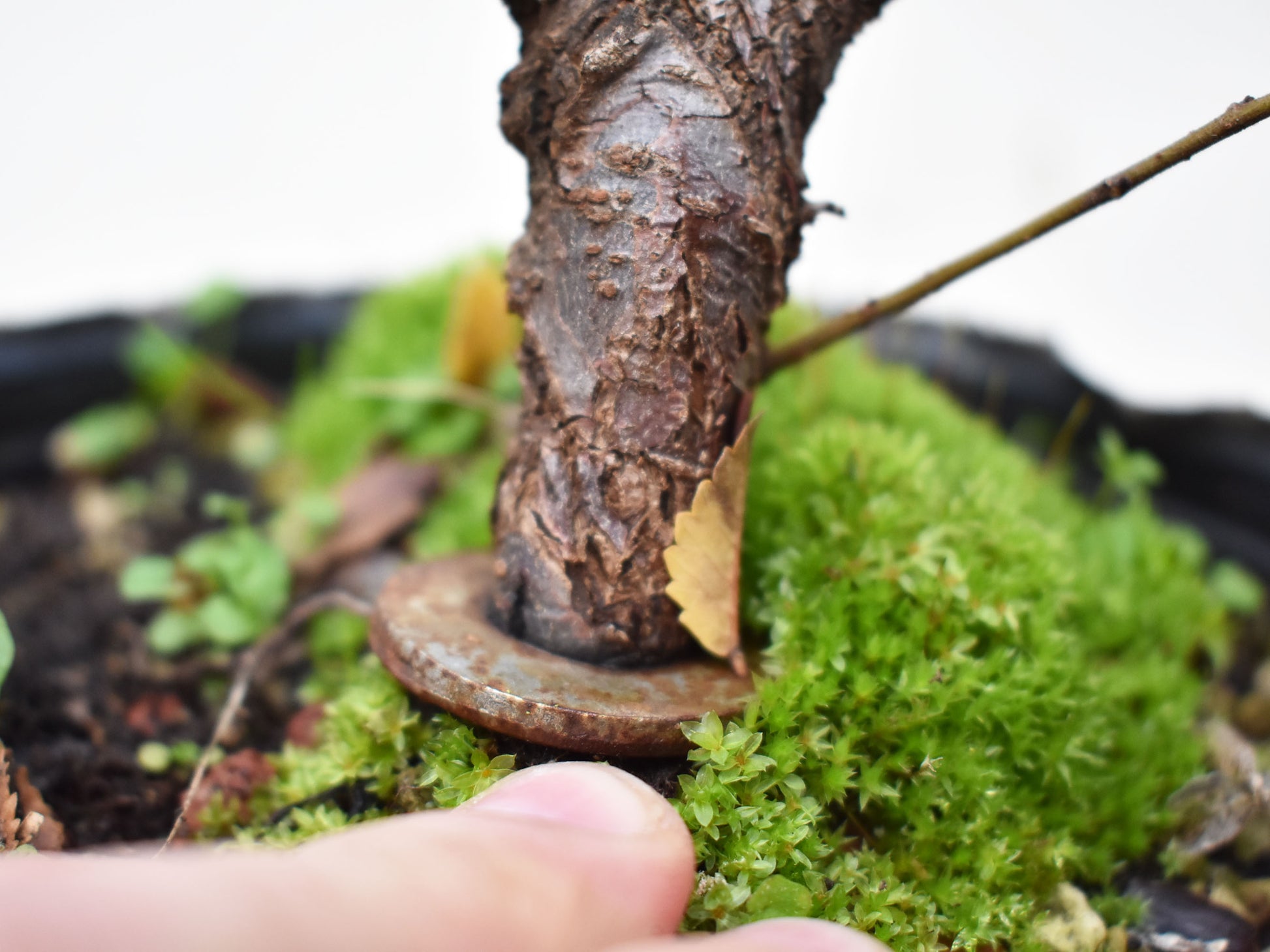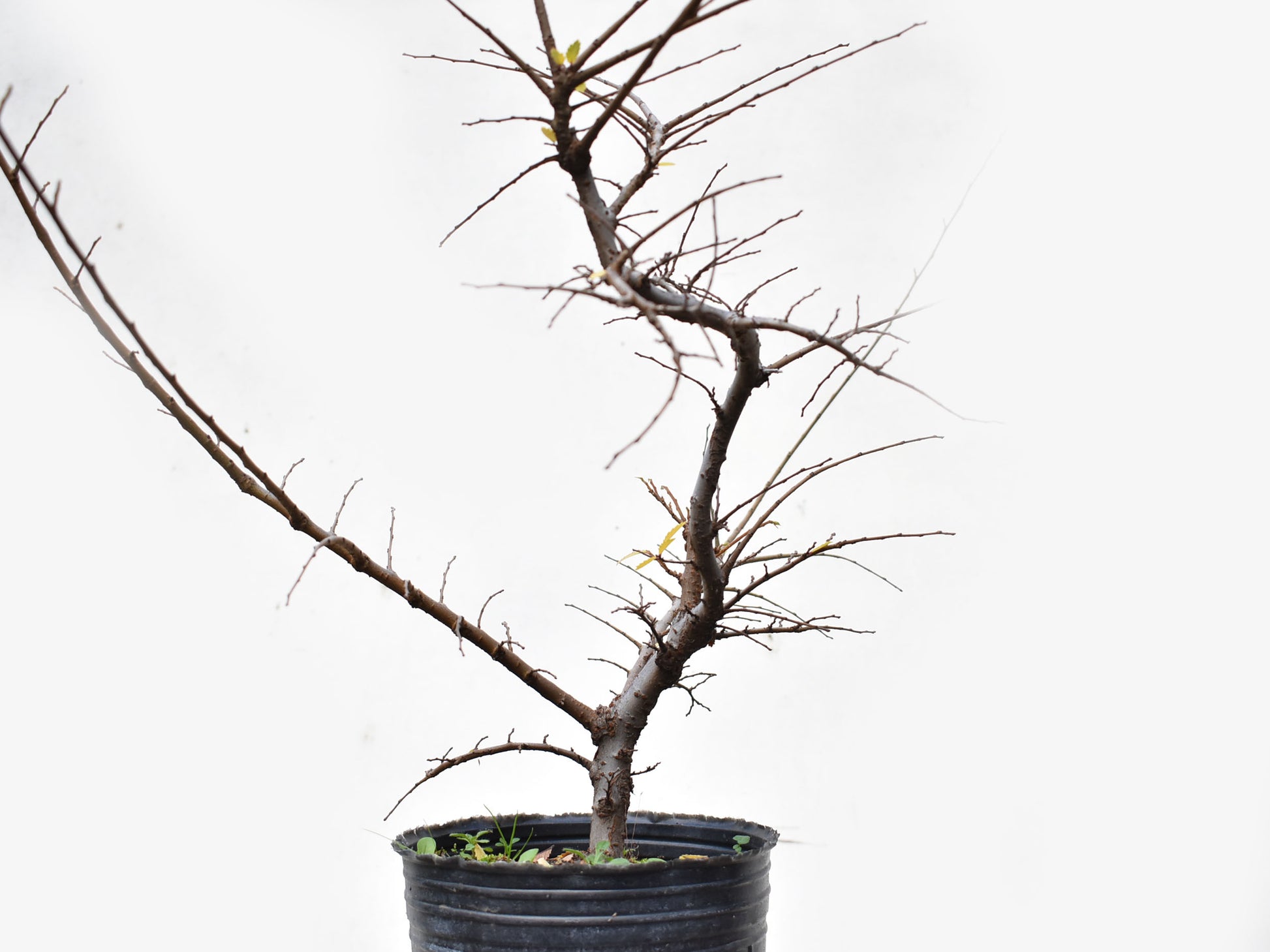Plantin de Olmo Chino. Cultivado durante 4 años desde un pequeño esqueje, y con arandela para formar una buena base y luego acodar.